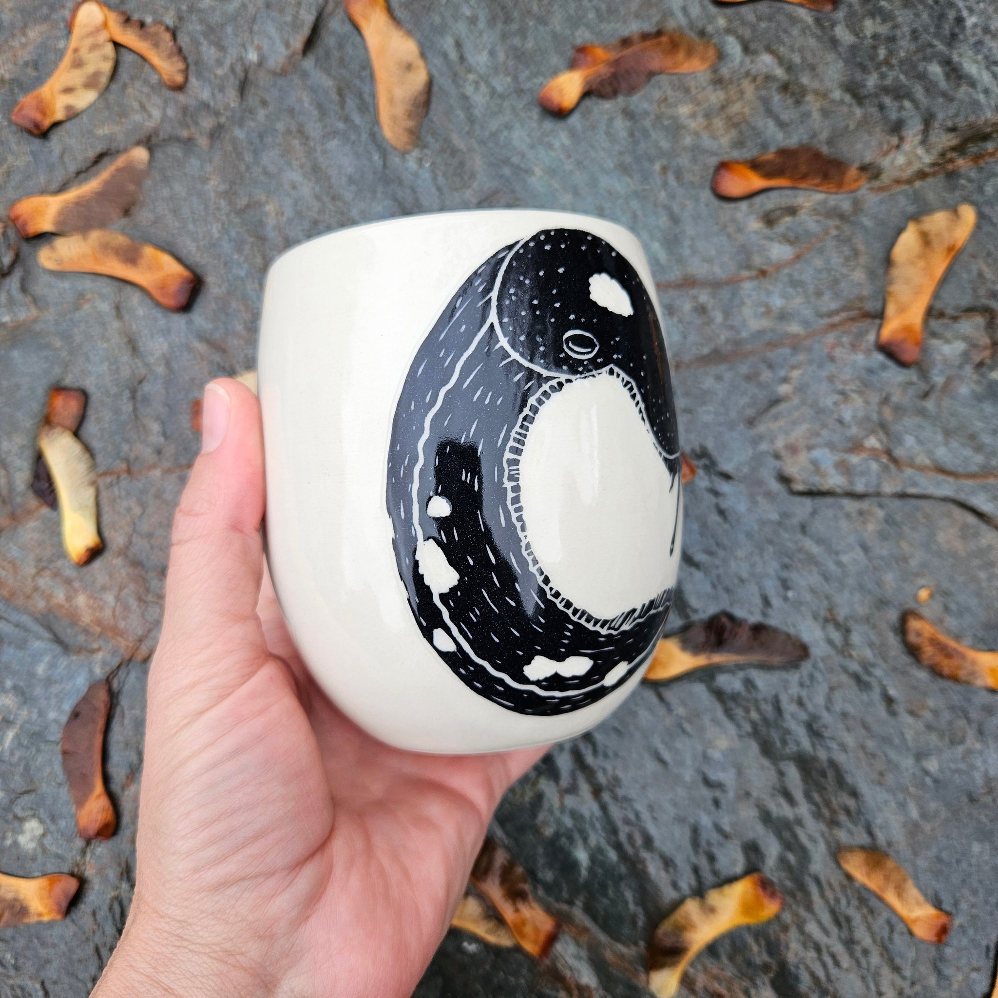 Width: 8cm. Height: 10.5cm*. Volume: 400mL or 13.5oz. Material: white porcelain ceramic. White interior.