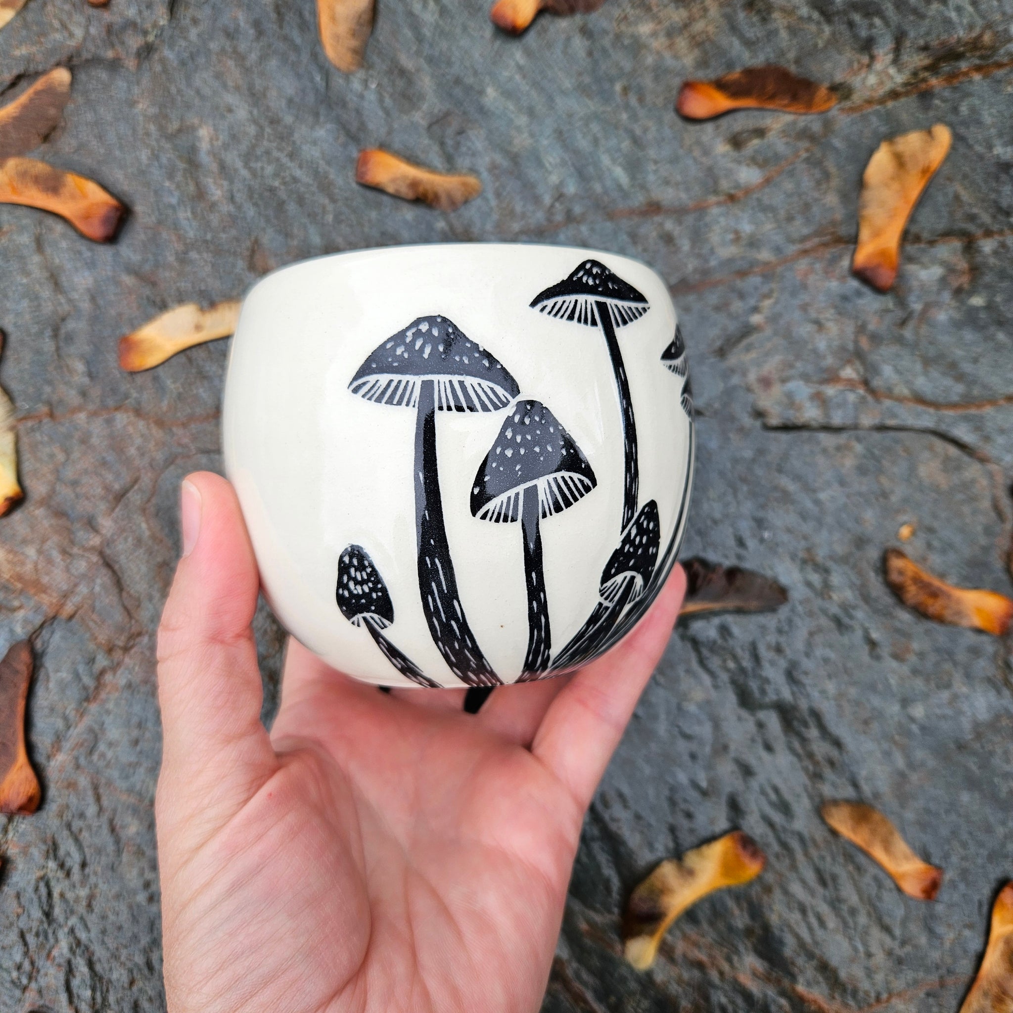 Width: 9cm. Height: 7.5cm*. Volume: 300mL or 10oz. Material: white ceramic. White interior.